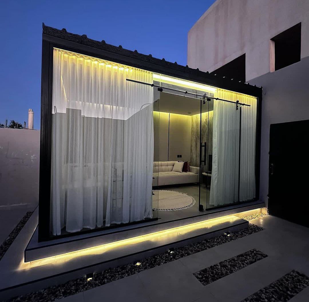 يمكن تصميم المجالس الزجاجية بأبواب قابلة للفتح بالكامل، مما يسمح بمرور الهواء الطبيعي والاستمتاع بنسمات الهواء العليل في مدينة العين، خاصة في فصل الشتاء أو خلال الليالي المعتدلة.